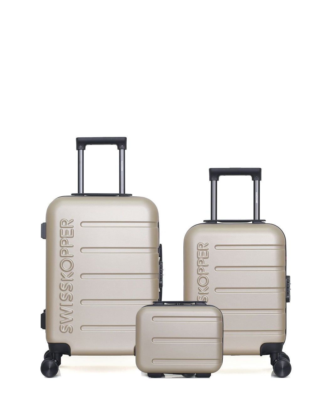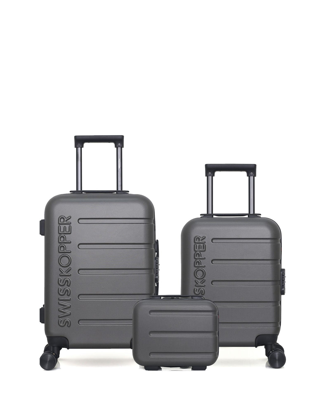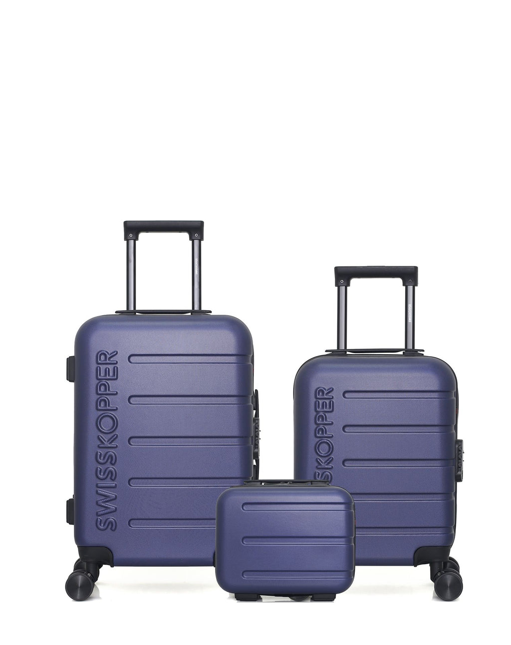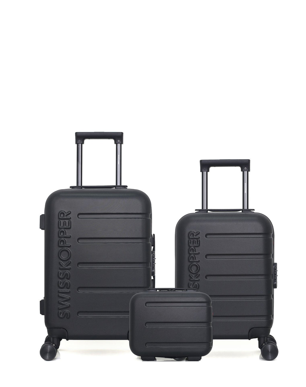 Compact et fonctionnel, ce lot est parfait pour les voyages courts ou les escapades en avion. Les formats cabine et cabine XXS répondent aux standards des compagnies aériennes, tandis que le vanity vous permet de garder vos essentiels à portée de main.