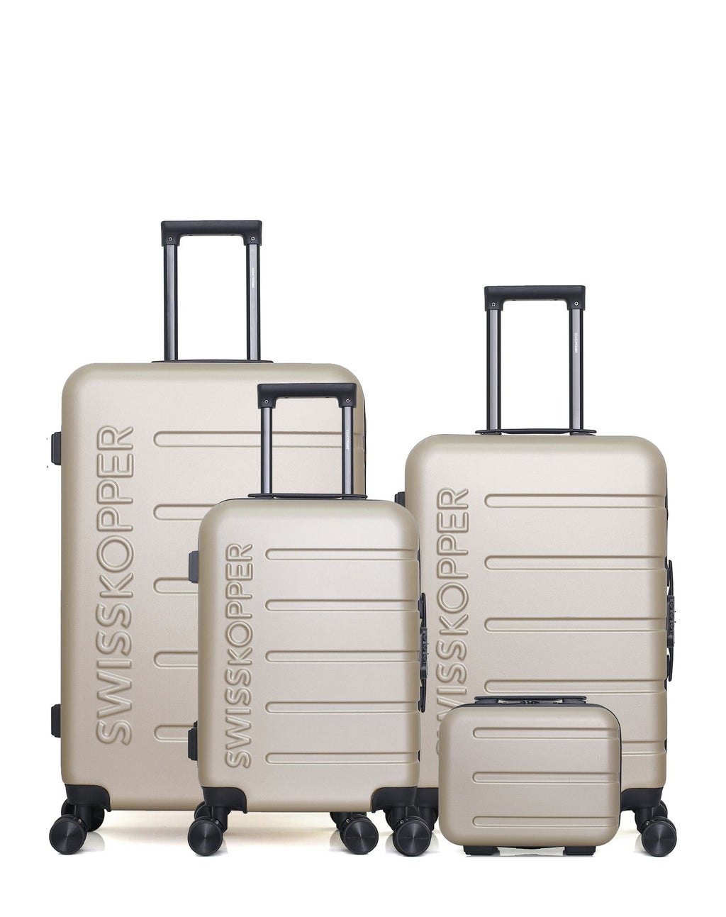 L'ensemble parfait pour ceux qui souhaitent voyager en toute tranquillité. Chaque valise du lot AIGLE offre un espace de rangement optimal, une coque rigide résistante et une mobilité fluide. Le vanity vient compléter le tout pour vos essentiels de toilette.