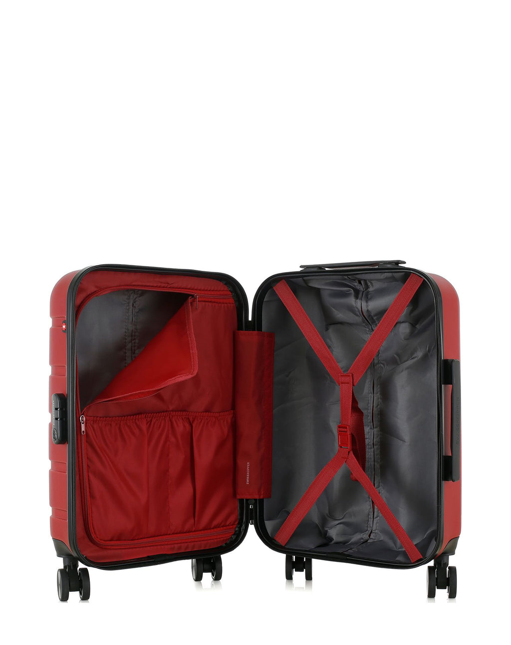 La valise cabine AIGLE de Swiss Kopper est l'option parfaite pour les voyageurs à la mode et occupés. Elle est dotée d'une fermeture à glissière et d'une serrure à combinaison intégrée pour assurer la sécurité de vos affaires.